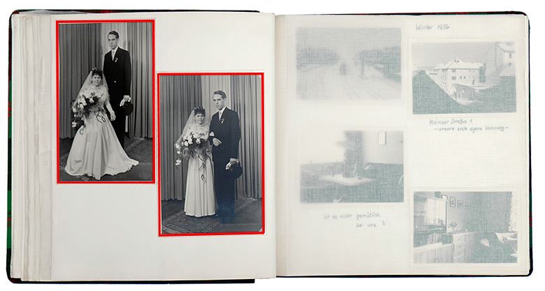 Wir digitalisieren jedes einzelne Bild in Ihren Fotoalben, ohne dabei eine einzige Aufnahme zu entnehmen und so eine Beschädigung zu riskieren. Unsere Spezialscanner erfassen jedes Bild einzeln und scannen es in perfekter Qualität. Natürlich können wir auch eine komplette Seite digitalisieren -so bleiben z.B auch handschriftliche Vermerke erhalten. Sie erhalten sie Ihr Fotoalbum nach der Digitalisierung unversehrt zurück.